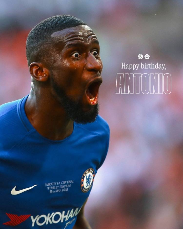 切尔西为吕迪格制作了生日祝福海报,并写道:祝你生日快乐!
