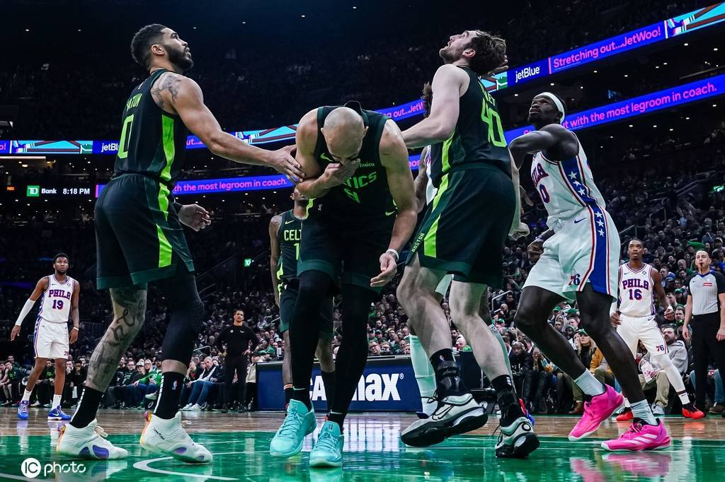 第一节,比赛一开始,凯尔特人迅速掌控节奏,打出一波14分的优势。在节末阶段,76人表现出韧性,积极追赶比分,但凯尔特人始终保持领先。塔图姆在本节中表现突出,个人取得15分,其中包括一记三分球。首节结束,凯尔特人以35-24领先。