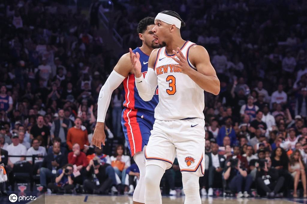 第二节,尼克斯在开场后再次展现出强大的进攻火力,以40-34取得领先。然而,活塞随即回应,不仅扳平了比分,还一度领先尼克斯3分。进入小节后段,尼克斯还是逐步缩小了分差。本节中,尼克斯的唐斯表现出色,拿下10分,活塞的哈里斯则砍下13分,其中3记三分球帮助球队稳住局势。第二节结束时,尼克斯以57-55稍稍领先。