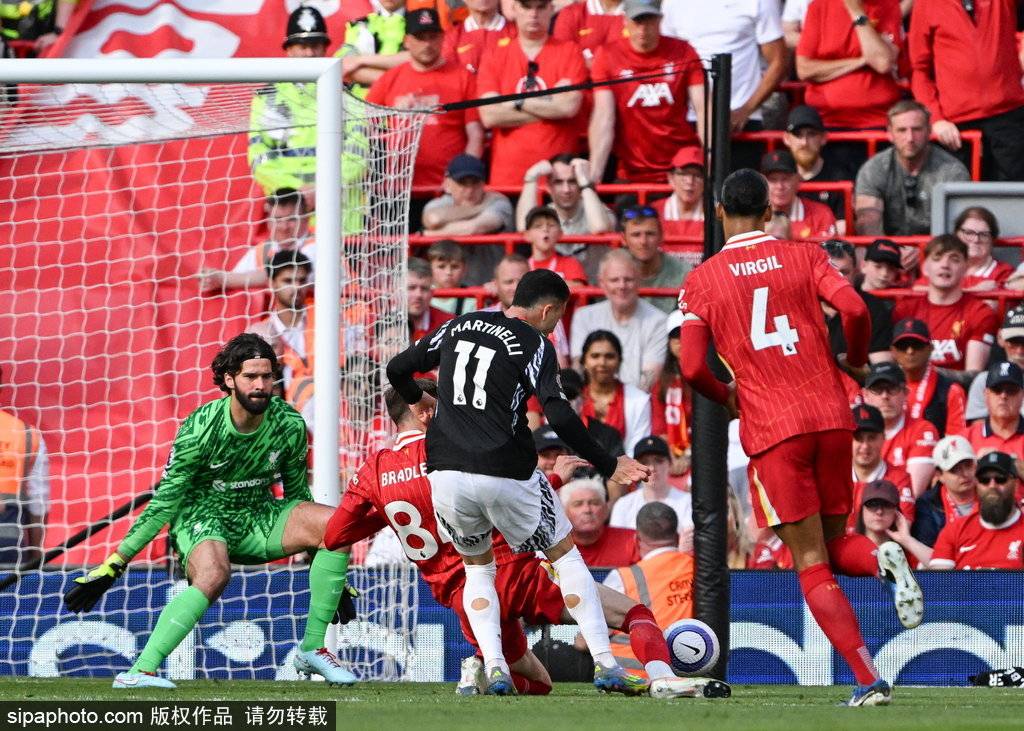 第20分钟,利物浦取得领先,罗伯逊禁区左侧传中,加克波前点头槌破门,1-0!加克波连续两个主场取得进球,这是他本赛季英超第10球,英超生涯首次单赛季进球数10+,同时这也是他本赛季第18球,继续刷新利物浦生涯单赛季进球纪录。
