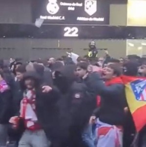 马竞球迷进入伯纳乌时向人群投掷杂物,导致安保对其进行脱鞋检查