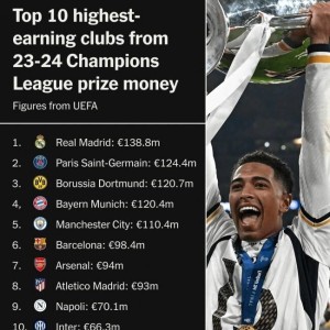 #奖金 #欧元 #多特蒙德 #欧冠 #阿森纳 #赛季 #那不勒斯 #马德里竞技 #国米 #拜仁慕尼黑 #曼城